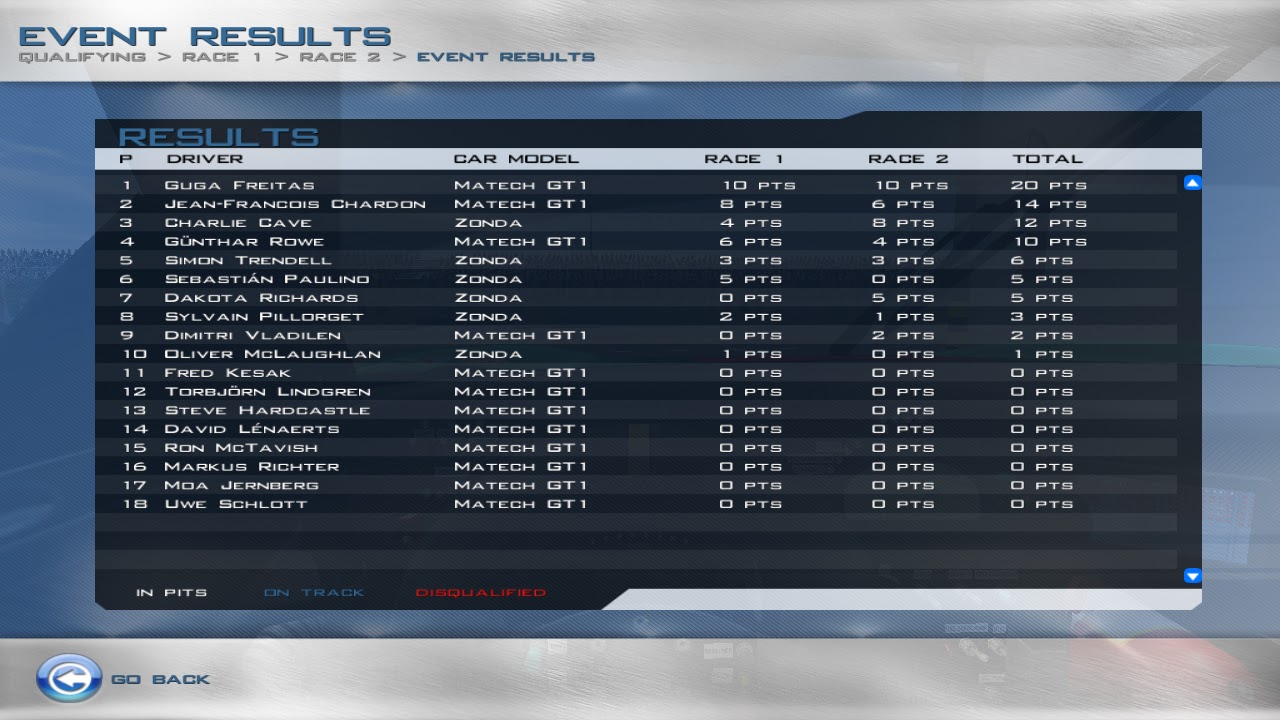 Guga Freitas, representante brasileiro na categoria Super GT, vence a rodada dupla inaugural realizada em Curitiba. Partindo da 10ª posição na corrida 1, conquistou cinco posições logo na 1ª volta. Acompanhando os primeiros colocados com uma atuação discreta, aproveitou-se da presença dos retardatários para assumir a liderança ao final prova. Uma vitória inesperada e histórica. A primeira da categoria.